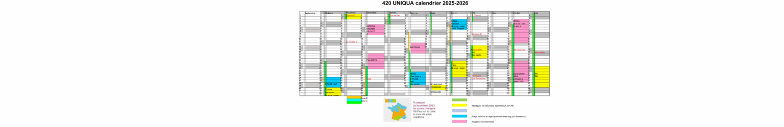 L : Ligue – compétition ouverte à tous – certaines sont support des sélections au Championnat de France Espoir – ces épreuves sont gérées par les ligues et n’apparaissent pas dans le calendrier Uniqua